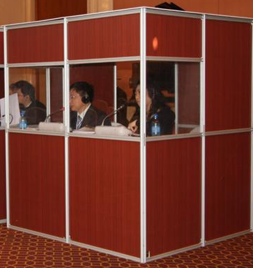 可折疊式的設(shè)計(jì)利于運(yùn)輸,同時(shí)翻譯房采用了優(yōu)質(zhì)隔音材料精心制作,外觀優(yōu)美,為國際會(huì)議標(biāo)準(zhǔn)產(chǎn)品。