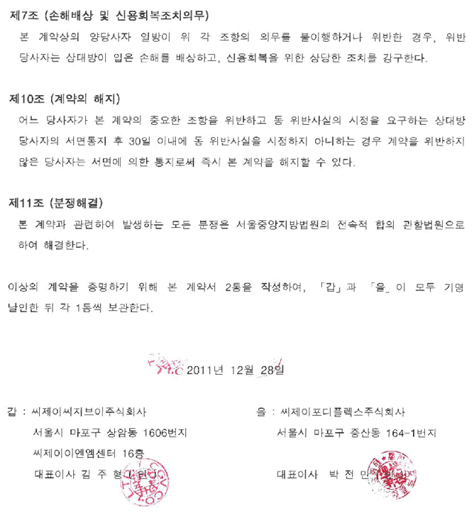 甲方:CJCGV株式會社 乙方:CJ4DPLEX株式會社