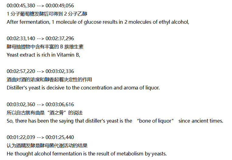 帶時間軸的字幕翻譯片段