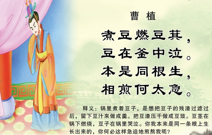 煮豆燃豆萁,豆在釜中泣。
